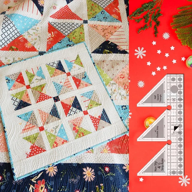 The 45° Double-Strip ruler is one of a range of Strip Rulers that are designed to make cutting Half-Square-Triangles, Quarter-Square-Triangles, 60° Triangles, Trapezoids and more from 2½" wide strips quickly and easily!