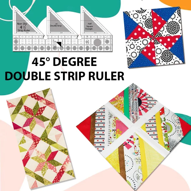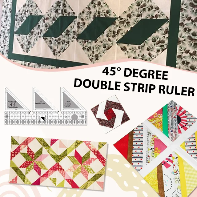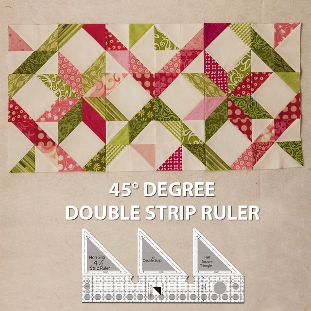The 45° Double-Strip ruler is one of a range of Strip Rulers that are designed to make cutting Half-Square-Triangles, Quarter-Square-Triangles, 60° Triangles, Trapezoids and more from 2½" wide strips quickly and easily!