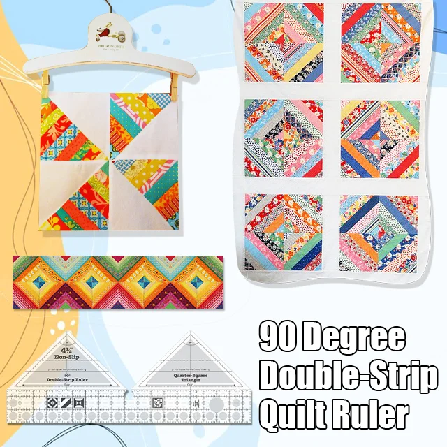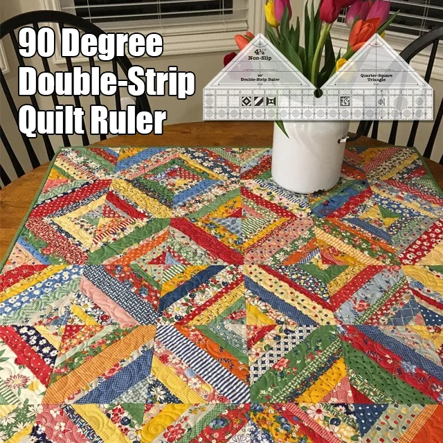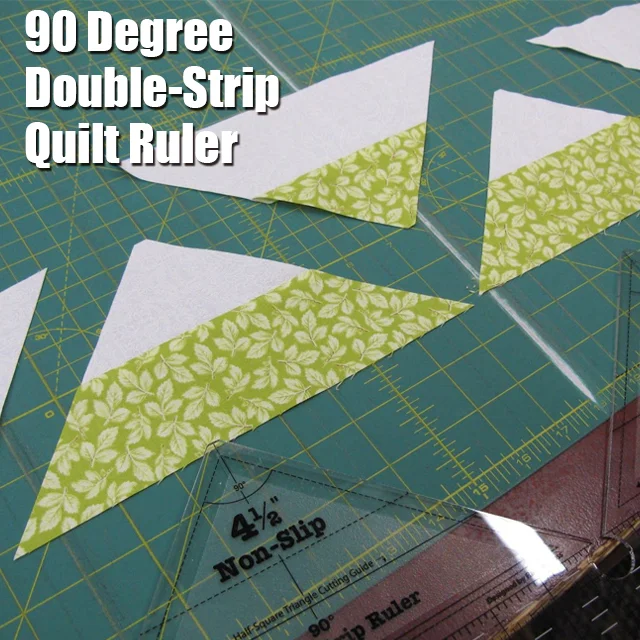 The 90° Double-Strip ruler is one of a range of Strip Rulers that are designed to make cutting Half-Square-Triangles, Quarter-Square-Triangles, 90° Triangles, Trapezoids and more from 2½" wide strips quickly and easily!