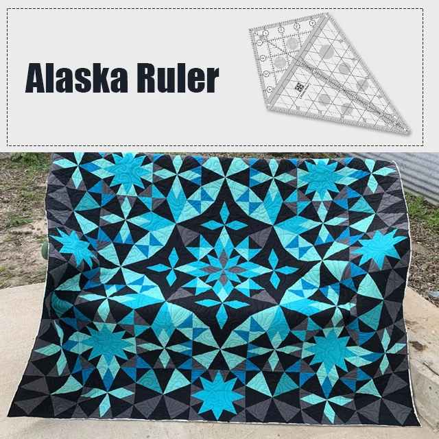 Alaska Ruler, cuts a multitude of shapes in a variety of sizes. Cut 45° wedges, diamonds, squares and half-square triangles all with the same ruler!