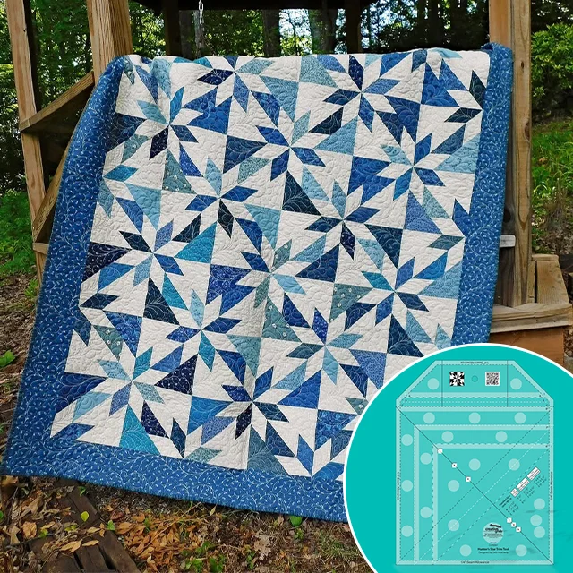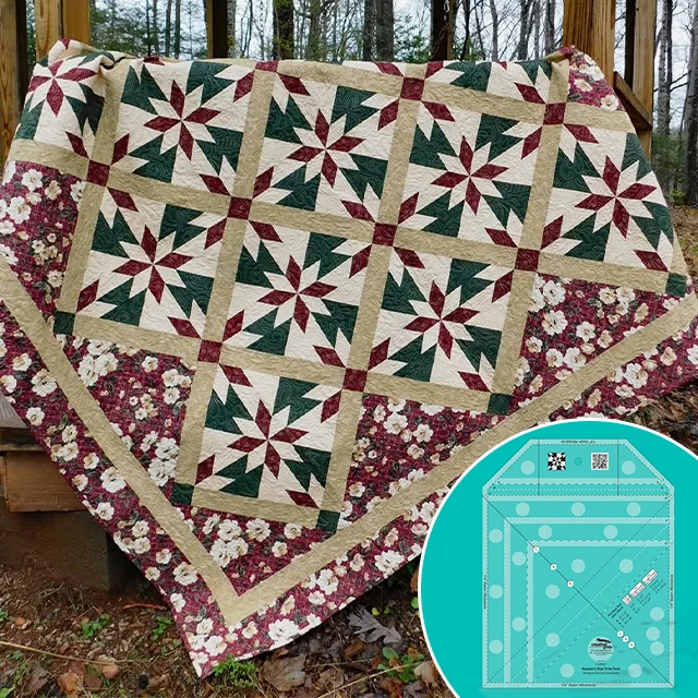 Using simple squares and rectangles, and the trimming lines on the tool, you will have Hunter's Star blocks made in three different sizes in no time at all.