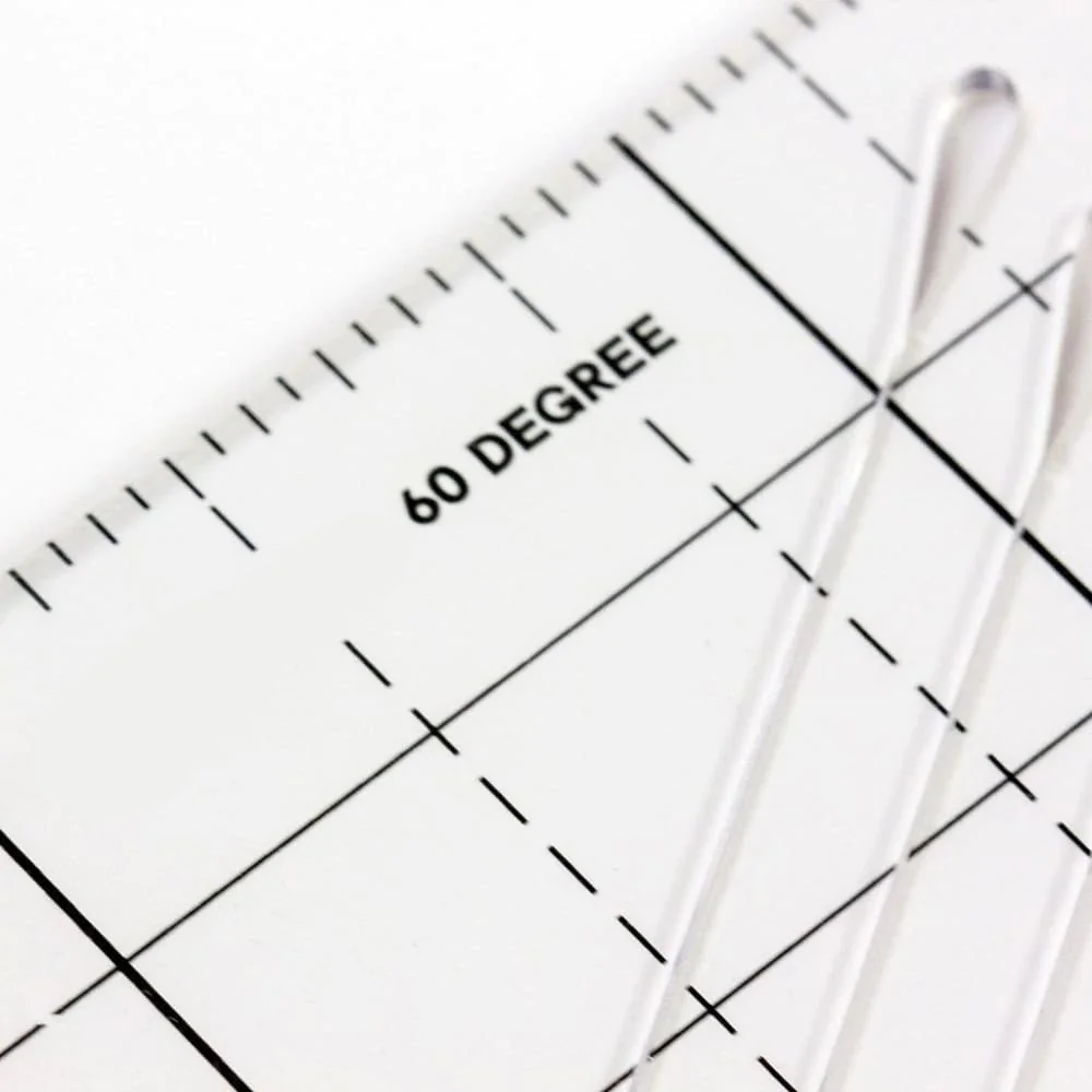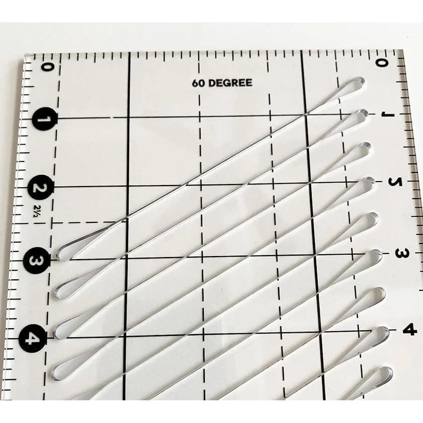 There are three available in different angles depending on your project and are slotted to cut multiple cuts on angles quickly. (This is the 45°, 60 Degree and Half Rectangle Triangles are also available). Make diamonds and triangles quickly. Perfect for tube piecing 1/2 square triangles as well.
